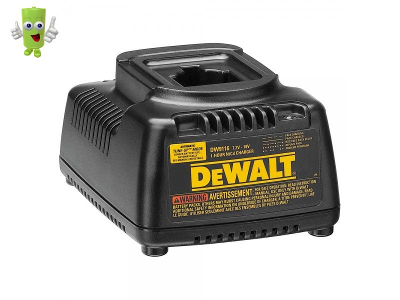 The DeWalt DW916 Charger will charge any DeWalt Pod-style battery between 7.2 and 18 Volts. It also features a re-fresh cycle and let’s you know when your pack is fully charged.